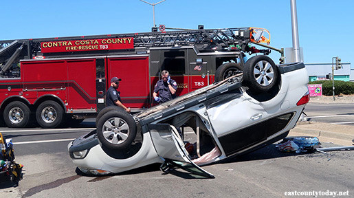 At 11:26 am Saturday, Contra Costa County firefighters responded to a report of an overturned vehicle crash on Buchanan Road at Gentrytown in the City of Antioch.