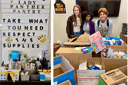 Last fall they started a little area in the girls’ locker room dubbed Lady Panther Pantry, which they stocked with basic toiletries like the items above along with hair ties, shampoo, chap sticks, hand sanitizer, razors and toothbrushes.