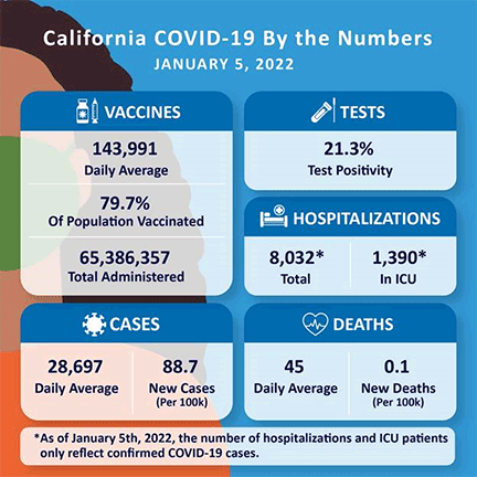 SACRAMENTO – The California Department of Public Health (CDPH) continues to monitor COVID-19 data in order to protect the health and well-being of all Californians. Since Thanksgiving, the statewide seven-day average case rate has increased by almost half (47%) and hospitalizations have increased by 14%. In response to the increase in cases and hospitalizations, and to slow the spread of both Delta and the highly transmissible Omicron variant, CDPH has issued updated guidance to curb the spread of COVID-19 and its variants.