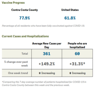 “The omicron variant is very contagious, and we now know that anyone, regardless of vaccination status, can spread this variant to other people,” said Dr. Ori Tzvieli, Contra Costa County deputy health officer. “We anticipate the case rate and hospitalization numbers to increase over the coming weeks. To reduce spread, cases and hospitalizations, we all need to wear masks anytime we are in an indoor public setting.”