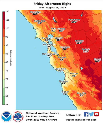 Temperatures are expected to be above normal temperatures ranging from 95 degrees to 103 degrees in the East Bay. This will result in potential heat related illness such as heat exhaustion and heat stroke.