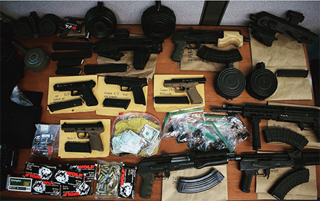 Along with the illegal firearms, over 1,000 rounds of ammunition, several high-capacity drum-style magazines, and almost two hundred conversation kits capable of making a Glock handgun fully automatic were located.