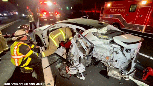 At 1:47 am Tuesday, the East Contra Costa Fire Protection District responded to a report of a vehicle crash at Laurel Road and Hillcrest in the City of Antioch.