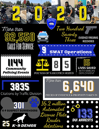 In the next couple weeks I’ll be sharing more detailed information about 2020, such as crime rate, response times, staffing, etc. But for now, here is just a brief snapshot of some of the numbers I found interesting. I hope you do as well!